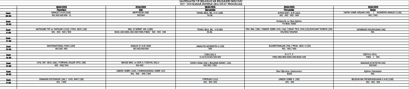 2025-2026 Bahar Dönemi Arasınav Programı